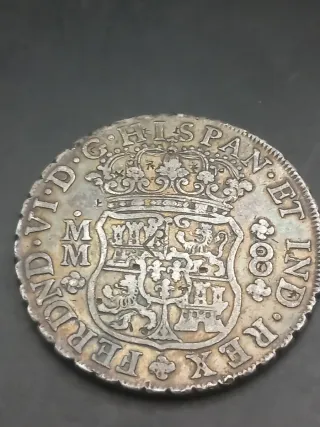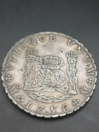 Fernando Vl .1756 , ceca México, peso 26.97 g plata , precioso 8 reales colunnario muy bonita pátina, con algunos resellos chino , de a ver circulado por chiná