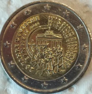 Moneda conmemorativa de 2 euros. - Conmemora el 25 aniversario de la reunificación alemana. - Diseño especial conmemorativo.