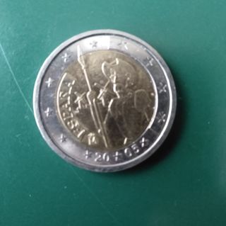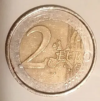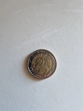 Moneda de 2 euros conmemorativa de España del año 2005. Presenta la imagen de Don Quijote. La primera moneda conmemorativa de 2 euros en España.