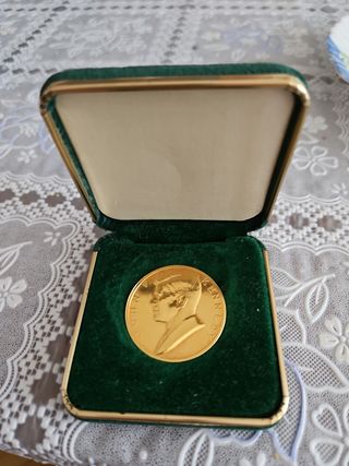 moneda conmemorativa del nombramiento del presidente de Estados Unidos JFK, baño Oro con estuche felpa verde. muy difícil de conseguir.