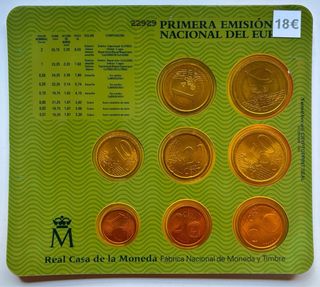 Conjunto de monedas de la Primera Emisión Nacional del Euro de España, año 1999. - Incluye varias denominaciones de euros. - Presentado en su embalaje original. - Diseño conmemorativo de la Casa de la Moneda. Tengo más artículos similares MIRAD MIS ANUNCIOS , Envio fotos washap o correo preguntad sin compromiso. Envio por wallapop y tambien por correo ordinario / Certificado a todo el Mundo . ( Mas Articulos en Ebay Y Todocoleccion Pedir Enlace) Alguna duda preguntar sin compromiso .
