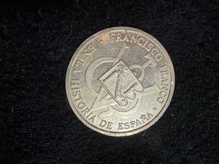 Moneda conmemorativa de plata. - Diseño de Francisco Franco. - Inscripción En la historia de España.