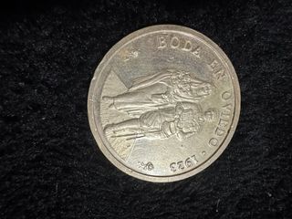 Moneda conmemorativa de un peso mexicano del año 1974. - Diseño con perfil de personaje histórico. - Inscripción UN PESO y año 1974 visibles.