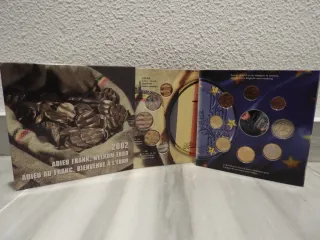 Carpeta conmemorativa de las primeras monedas de Euro de Bélgica del año 2002. - Incluye monedas de diferentes valores. - Diseño conmemorativo Adieu Frank, Welkom Euro. - Año: 2002.