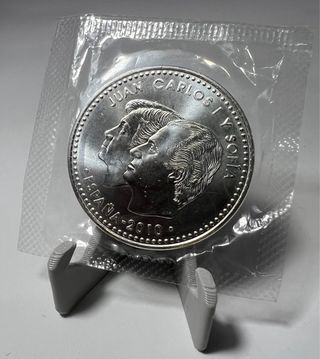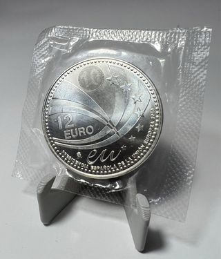 Moneda conmemorativa de 12 euros de España del año 2010. - Diseño con estrellas y el texto EUROPA 2010. - Presentada en su embalaje original.