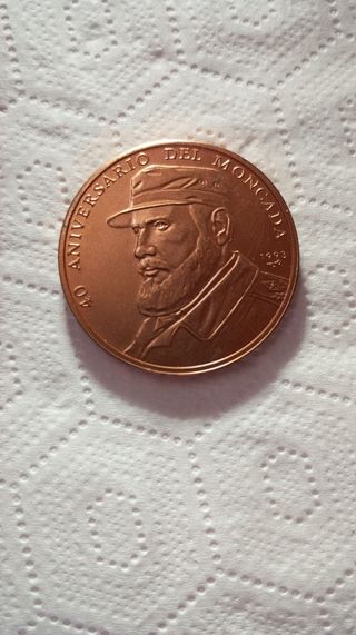 Moneda conmemorativa del 40 aniversario del Moncada. - Diseño con retrato de figura histórica. - Inscripción 40 ANIVERSARIO DEL MONCADA. - Año 1983 visible.