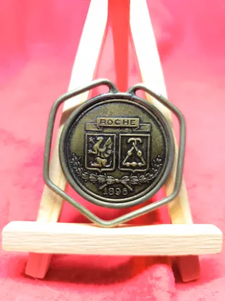 Medalla conmemorativa de Électricité de France. Presenta un diseño detallado con figuras. - Diseño circular. - Grabado de Électricité de France en la base.