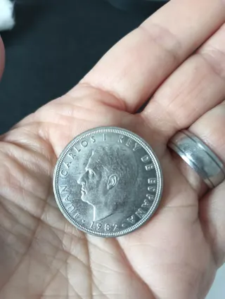 Moneda conmemorativa de Juan Carlos I, Rey de España, acuñada en el año 1982. - Diseño detallado del perfil del rey. - Inscripción JUAN CARLOS I REY DE ESPAÑA. - Año de acuñación: 1982. ( Info personal -moneda n5)