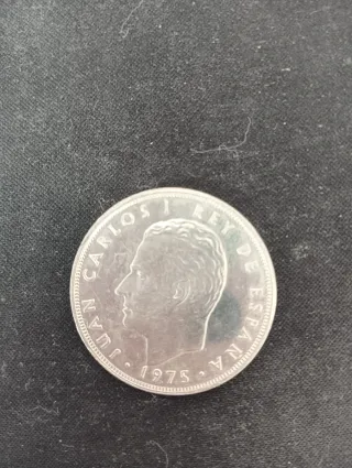 Moneda conmemorativa de Juan Carlos I, Rey de España, acuñada en el año 1975. - Diseño con el perfil del Rey Juan Carlos I. - Inscripción JUAN CARLOS I REY DE ESPAÑA. - Año de acuñación: 1975. ( Info personal -monedas n6)