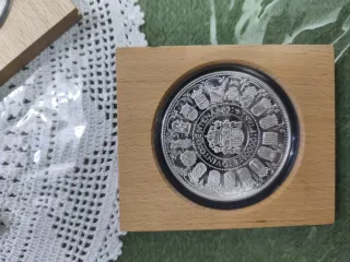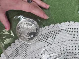 Moneda conmemorativa del Mundial de Baloncesto de 1986 celebrado en España. - Diseño con la jirafa mascota del Mundial llamada " Pívot " - Bañada en plata de ley. Peso: 10,55 grs y Diámetro: 31 mm Está moneda es rarísima, pues no sé encuentra fácilmente en el mercado, por no decir imposible, por tanto para los entusiastas y coleccionistas de objetos de baloncesto es una oportunidad única de hacerse con una pieza casi exclusiva que se revalorizará en el tiempo.