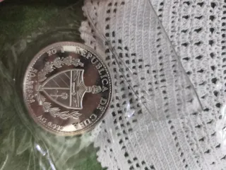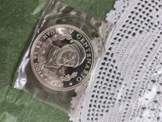 Moneda conmemorativa de plata de 50 pesos, dedicada a Juan de la Cosa. - Diseño detallado del personaje histórico. - Inscripción Centenario y 1492. - Presentada en su empaque protector.