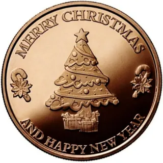 Moneda conmemorativa Onza de cobre con diseño navideño. se entrega encapsulada - Representa un árbol de Navidad decorado. - Incluye regalos en la base. - Motivos de bastones de caramelo y flores. - Inscripción Merry Christmas And Happy New Year.