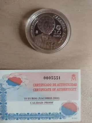 Moneda de plata conmemorativa del Xacobeo 2004. Encapsulada y con su certificado. - Acabado Proof.