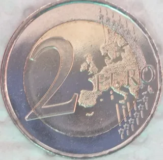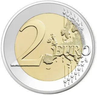 Moneda de 2 euros conmemorativa de Croacia del año 2023. El diseño muestra el mapa de Croacia. - Canto con inscripción. - Diseño de mapa de Croacia.