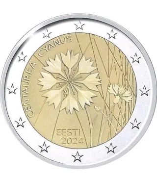 Moneda conmemorativa de 2 euros de Estonia 2024, el Aciano, flor nacionalde Estonia. Moneda nueva sin circular, extraida de cartucho oficial. Artículo de colección personal. Entrego en persona o envío por wallapop. No contesto preguntas absurdas ni atiendo a regateadores.