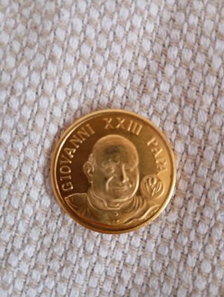 Moneda de colección conmemorativa del Papa Juan XXIII. - Diseño detallado del Papa. - Inscripción GIOVANNI XXIII PAPA en el borde. Unos 7 gramos u 8 .depende de los.pesos. no sé qué metal es , pero es muy ligera.