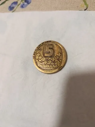 Moneda conmemorativa de Finlandia del año 1990. - Diseño con un barco. - Inscripción SUOMI FINLAND 1990. - Inscripción LO QUE EL EURO SE LLEVO. - Año 2003 en el borde.