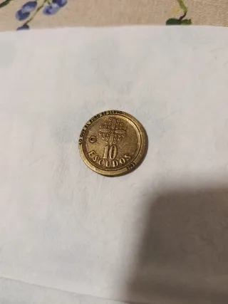 Moneda conmemorativa de Portugal. - Inscripción LO QUE EL EURO SE LLEVÓ. - Valor de 10 Escudos. - Diseño con patrón de puntos. - Año inscrito 2003.