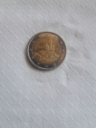 Moneda de 1 euro conmemorativa del año 2000. - Diseño con paisaje y estrellas. - Borde exterior dorado y centro plateado.