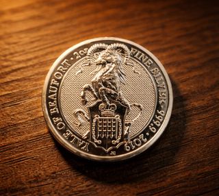 Moneda de plata conmemorativa Yale of Beaufort. - Peso: 2 onzas. - Pureza: 999.9 de plata fina. - Año: 2019. - Diseño: Yale de Beaufort con escudo real. - Impecable. - Se vende en funda de plástico.
