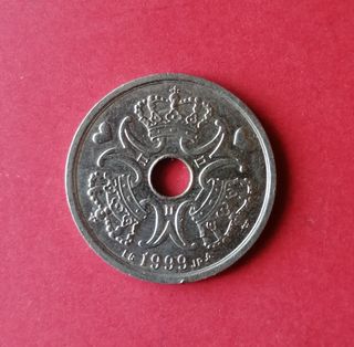 25 øre danmark 1986 agujero 1 Krone Frederik ix
