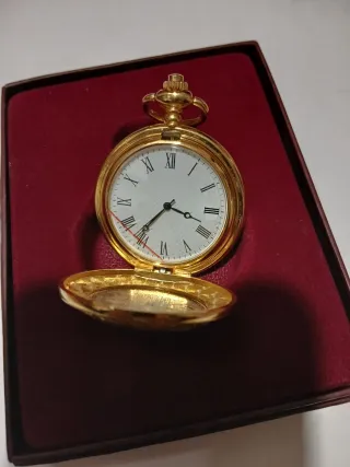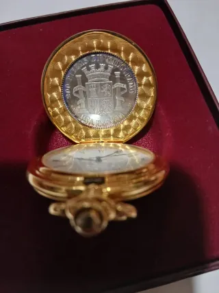 Reloj de bolsillo dorado con moneda