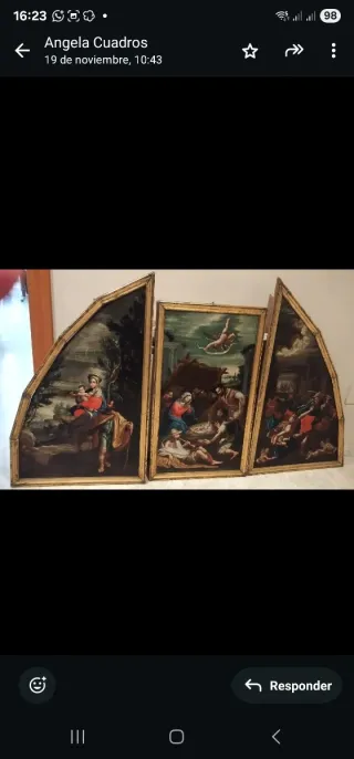 Gran tríptico al óleo de alta época, una pieza de arte religioso con gran detalle. Laterales: 96x59x5cm Central 84x59x5cm Totales 96x178 cm Alta epoca siglo xvi Escucho ofertas serias. A recoger en Barcelona Oro plata diamantes joyas bargueño antiguo xix xviii xvii xvi gotico romanico escultura religioso antiguedad rolex reloj porcelana Arte pintura cuadro lienzo marco tabla moderno contemporaneo cubista surrealista impresionista Talla escultura religoso religiosa belen arte oleo bronce madera inversión rolex reloj porcelana bargueño antiguedades coleccion romanico monedas