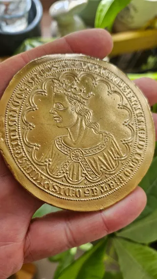 Moneda histórica de oro, Gran Dobla de Pedro I. Esta Reproducion Artesana es de plata pura y un fuerte Bańo de Oro Peso de la moneda aproximado 68 gram Diametro mas de 70 mm - Diseño con retrato real. - Inscripción en el borde. Escucho ofertas Serias.
