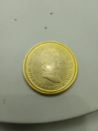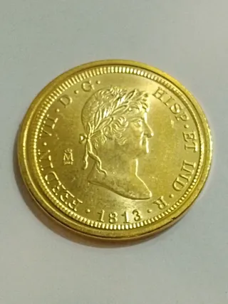 Reproducción de moneda de Fernando VII del año 1813 con baño de oro de 24 quilates.acuñado x la real casa de la moneda y timbre. - Réplica de alta calidad. - Acabado brillante.
