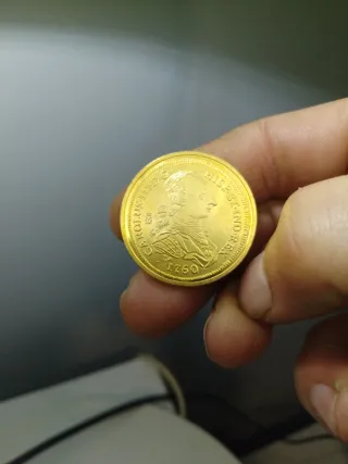 Moneda reproducción baño oro 24k Carlos III 1760