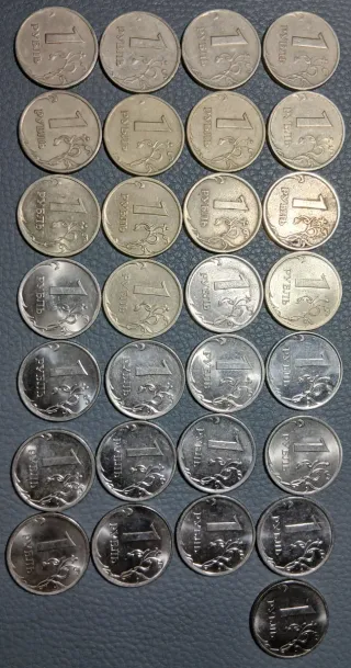 29 Monedas de 1 Rublo Rusia todas de diferentes Años: 1997 Ceca Moscu 1997 Ceca Sant Petesburgo 1998 Ceca Moscu 1998 Ceca Sant Petesburgo 2005 Ceca Moscu 2005 Ceca Sant Petesburgo 2006 2007 Ceca Moscu 2007 Ceca Sant Petesburgo 2008 2009 Imantada 2009 Normal 2010 Ceca Moscu 2010 Ceca Sant Petesburgo 2012 2013 Ceca Moscu 2013 Ceca Sant Petesburgo 2014 2015 2016 2017 2018 2019 2020 2021. Si buscas alguna moneda en concreto de Rusia o Federación Rusa pregunta la busco. Palabras clave: Monedas coleccion, Rusia, URSS, Unión Soviética, Billetes, Oro, Plata, Inversión, Rublo.