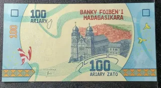 Billete de 100 Ariary Zato de Madagascar. Nuevo Sin Circular - Diseño con un anfibio y motivos naturales. - Texto en malgache y francés. Palabras clave: Monedas coleccion, Rusia, URSS, Unión Soviética, Billetes, Oro, Plata, Inversión, Rublo.