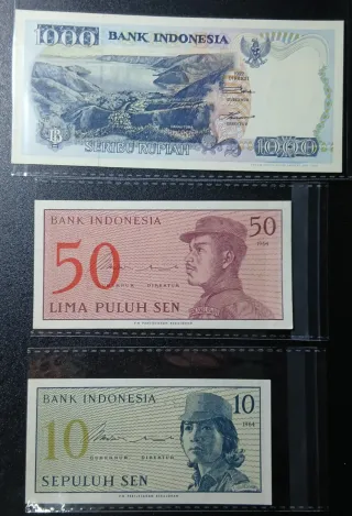 Lote de 3 billetes de Indonesia. Nuevos Sin Circular - Billetes de 1000, 50 y 10 Rupiah. - Diseños variados con paisajes y retratos. Palabras clave: Monedas coleccion, Rusia, URSS, Unión Soviética, Billetes, Oro, Plata, Inversión, Rublo.