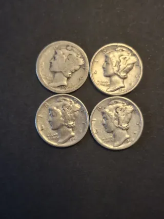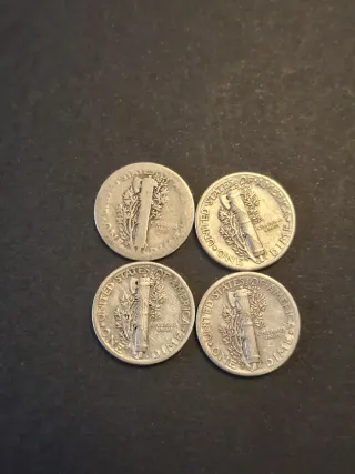 Conjunto de cuatro monedas de plata Mercury Dime. 🥈 - Moneda de 1920 - Moneda de 1940 - Moneda de 1941 - Moneda de 1944 PRECIO POR UNIDAD