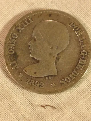 Moneda Antigua Alfonso XIII 1892 Plata