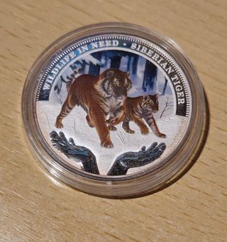 Vendo exclusiva moneda de plata pura (.999) de 1 onza. Edición "Wildlife in Need - Tigre Siberiano" (Tuvalu, 2012). Acabado: Calidad Proof con precioso diseño a color. Exclusividad: Tirada mundial hiperlimitada a solo 5.000 unidades. Extras: Incluye su caja original y el Certificado de Autenticidad. Estado: Impecable, calidad coleccionista. Una pieza difícil de encontrar completa. Hago envíos por Wallapop o entrego en mano en Hortaleza.