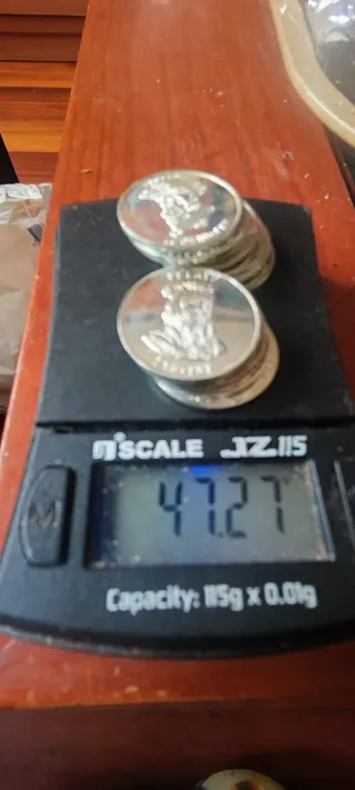 Arras de plata dime 32 gramos plata 900 milesimas Los dimes en muy buen estado casi sin circular La caja está dañada ver foto Envío certificado y asegurado incluido
