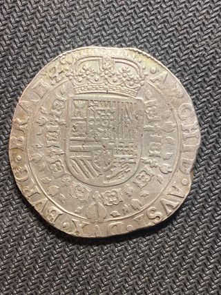 Moneda española de Felipe IV. Patagon 1632 - Amberes. EBC-/XF-. Plata 27 g. Anverso: FHIL IIII D G HISP ET INDIAR REX. Reverso: ARCHID AVST DVX BVRG BRAB.