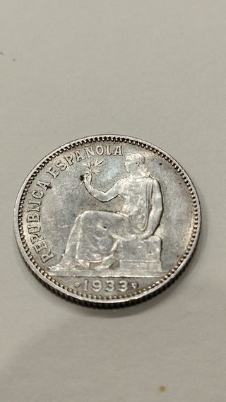 Preciosa moneda de una peseta de la República Española, acuñada en 1933. Se encuentra en buen estado de conservación, mostrando detalles nítidos. - Moneda de plata. - República Española. - Año 1933.