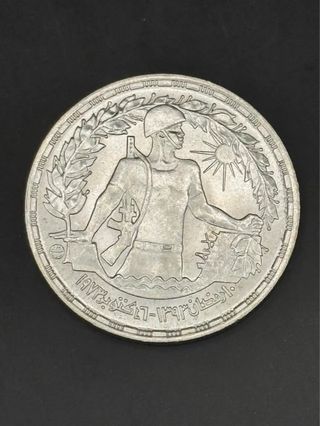Moneda conmemorativa de 1 Libra del año 1974. - Diseño con un soldado y laureles. Moneda conmemorativa de 1 pound del año 1974 - moneda de egipto de plata 720 - peso 15 gramos ( guerra de octubre ) No leer: l82 20 moneda antigua de plata españa española peseta real reales escudo escudos primera republica error variante alfonso XII XIII amadeo I franco caudillo paquillo inversion coleccion coleccionismo oro plata pura plata 900 999