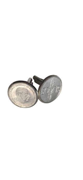 Gemelos de camisa artesanales, cuya base es de metal cromado de alta calidad, y montan auténticas monedas españolas de 50 pesetas del año 1966, con la efigie de Francisco Franco Cada moneda mide 20 mm de diámetro y ha sido cuidadosamente seleccionada. Elegante, retro y con carácter, perfecto para eventos, bodas, cenas de gala o como regalo especial para amantes de la historia. Gemelos exclusivos (no encontrarás otros iguales) Monedas originales, no réplicas Fabricados a mano en España #gemelos #cufflinks #monedasantiguas #50pesetas #Franco #vintage #retro #modahombre #regalounico #accesorioscamisa #bodahombre #estiloclásico