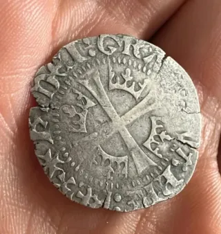 Moneda de plata de Navarra, un Gros de Carlos el Noble. - Periodo: 1387-1425. - Referencia: Cru.V.S. 251. - Peso: 3,5 g. - Catalogación: Muy rara.