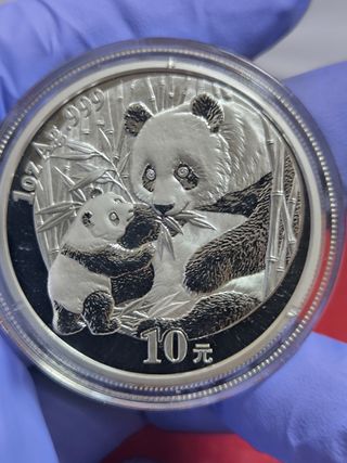 Moneda 1 Onza de Plata 999 Mint / CHINA MINT Serie / PANDA Año / 2005 Se entrega la moneda de la foto en cápsula original y verificada con el comprobador Sigma Metalytics como se puede ver en las fotos. Encápsulada de fabrica para su protección y conservación. Entrega en mano en Moncloa, Collado Villalba o Alcorcón. Posibilidad de envío certificado por 6 euros hasta 2 Onzas y 8 euros de 3 a 10 onzas, pago por bizum, PayPal amigos.