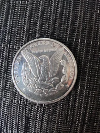Moneda conmemorativa tipo dólar Morgan del año 1888. Presenta un diseño detallado con un águila en el centro. No es de plata, es una réplica decorativa. Diámetro, ver fotos con euro para referencia. - Año: 1888 - Tipo: Dólar Morgan - Diseño: Águila