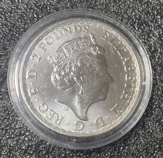 Moneda Britannia de 1 onza de plata fina del año 2021. - Plata fina 999. - Diseño de Britannia con escudo y tridente. - Borde con patrón de micrograbado. -Preferiblemente en mano,zona Valencia