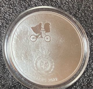 Moneda conmemorativa de E.T. el Extraterrestre. - Peso: 1 oz. - Pureza: .999 AG (Plata). - Diseño con licencia de Universal City Studios LLC. -Preferiblemente en mano, zona Valencia