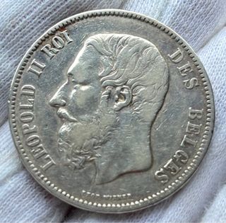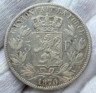 Moneda PLATA BELGICA 5 Francos 1870. Leopoldo II