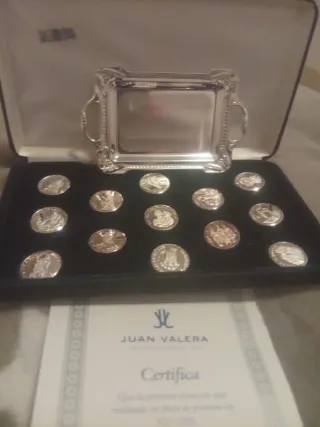 Conjunto de bandeja de plata de Juan Valera con 13 monedas religiosas - Bandeja de plata. - 13 monedas de plata. - Certificado de autenticidad incluido.