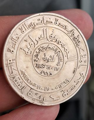 Difícil medalla de plata de Irak (Iraq) de 1978 conmemorativa del 10° aniversario de la revolución. Rara