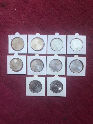 Conjunto de diez monedas conmemorativas, cada una presentada en su protector individual. - Diseños variados. - Protección individual para cada moneda. Sin circular! Originales Vintage Numismática